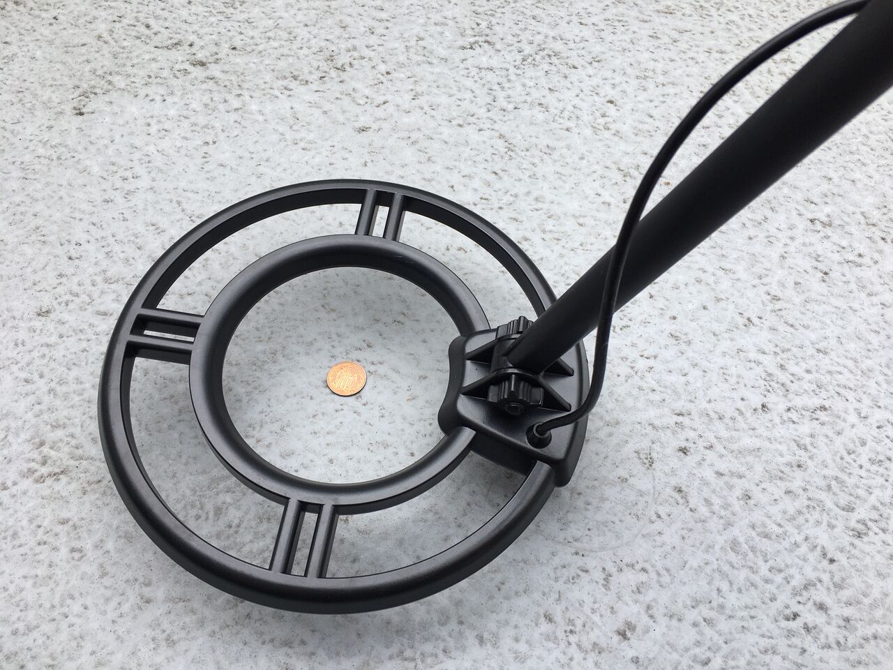 1円玉、10円玉、100円玉を置いて、その上でサーチコイルを動かしてみたところ、ほとんどピンポイントで反応しました。