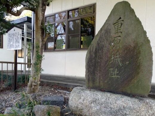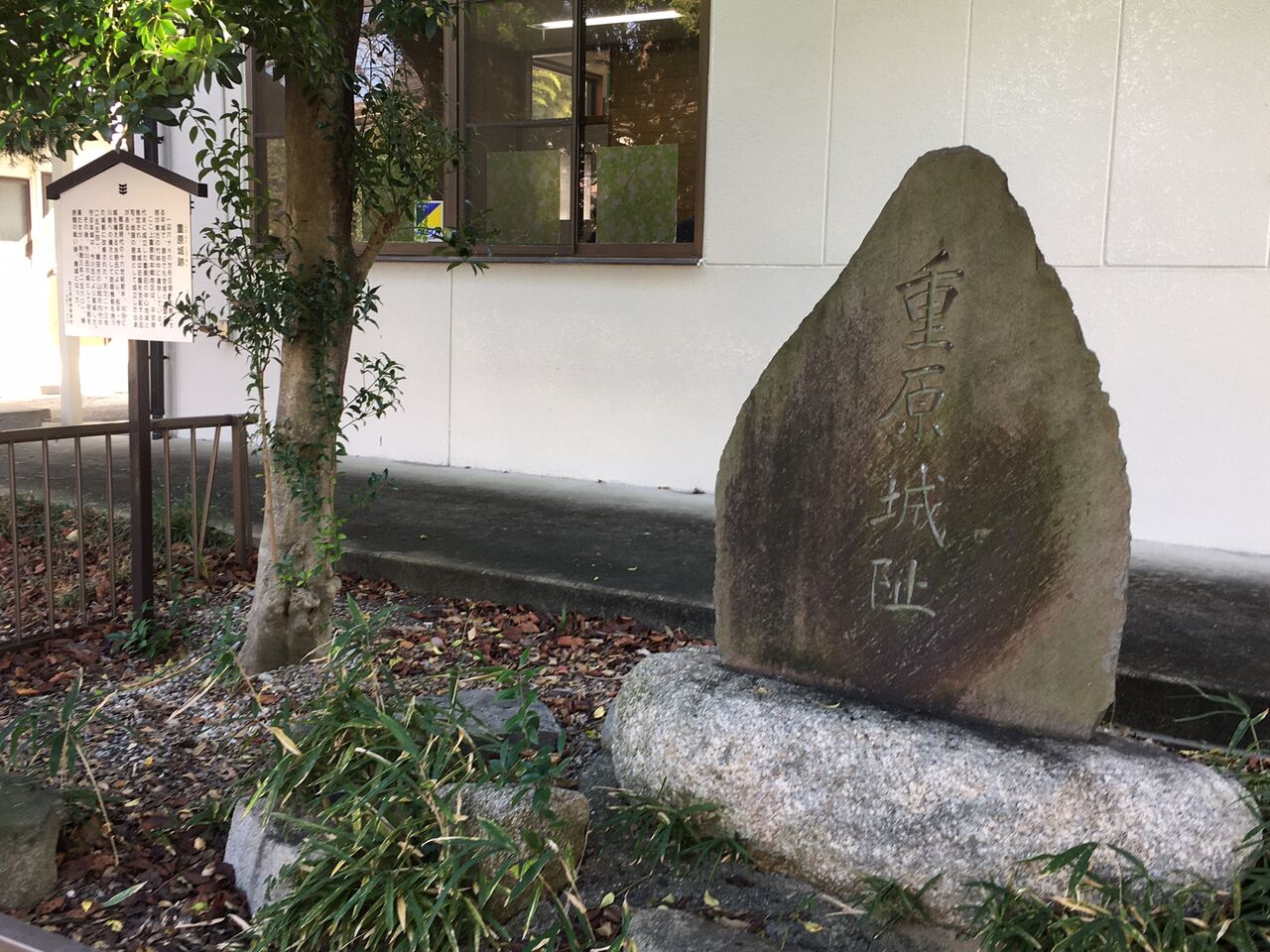 名鉄三河線の重原駅から徒歩3分、上重原公民館の裏に「重原城址」と刻まれた石碑がひっそりと立っています。