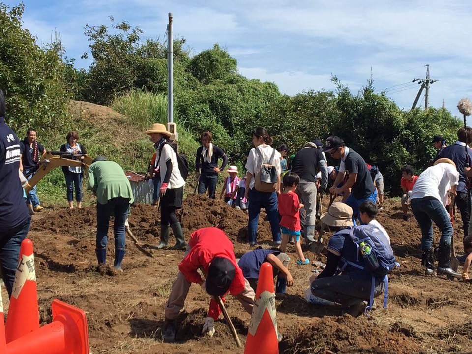 当日は、スコップを手にした親子連れが宝探しに奮闘。